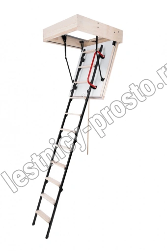 Складная 4-х секционная чердачная лестница. Ступени выполнены из сосны, имеют противоскользящие насечки, направляющие из металла