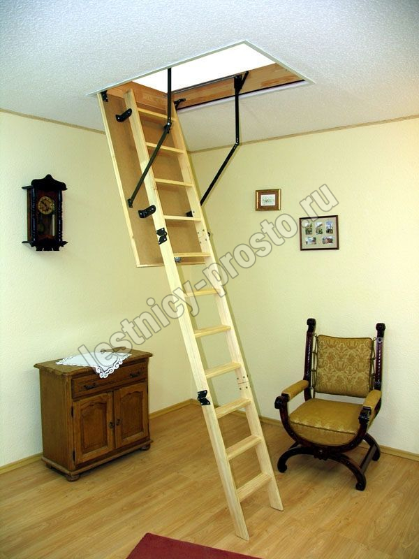 Складная 3-х секционная чердачная лестница из массива сосны.