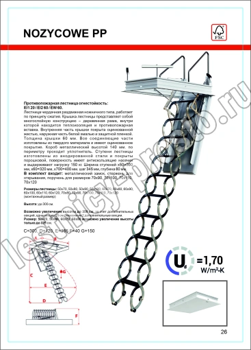 Противопожарная чердачная лестница с люком LSF OMAN NOZYCOWE PP 70х100 см, h-300 см