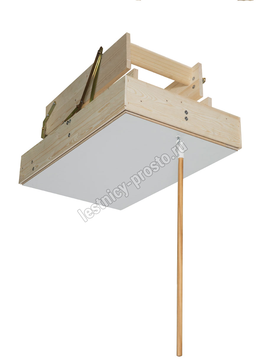 На ступенях лестницы антискользящие насечки. Люк с двух сторон облицован ДСП белого цвета.