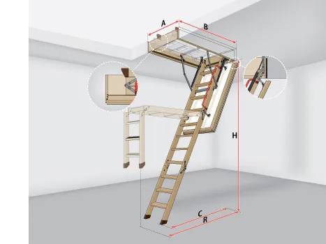 Превосходно подходит для домов, в которых наблюдается значительная разница температур между неотапливаемым холодным чердаком и отапливаемым жилым помещением. В данной модели применена новая конструкция, повышающая прочность и надежность движущихся элементов. Нагрузка при эксплуатации перенесена на лестничный марш, благодаря чему крышка полностью заполнена утеплителем. Лестница LWT комплектуется удобным поручнем и пластиковыми наконечниками на ножки. Монтажный комплект LXK приобретается отдельно.