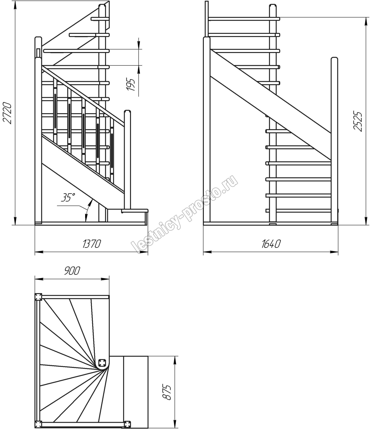 Деревянная межэтажная лестница ЛЕС-03 2525-2720 проем 1640-900, Бук