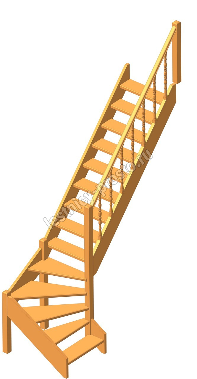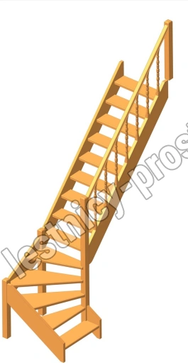 Деревянная межэтажная лестница ЛЕС-07 2880-3085 проем 2550-830, Лиственница