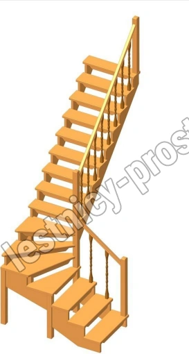 Деревянная межэтажная лестница ЛЕС-09 3310 проем 2800-900, Бук
