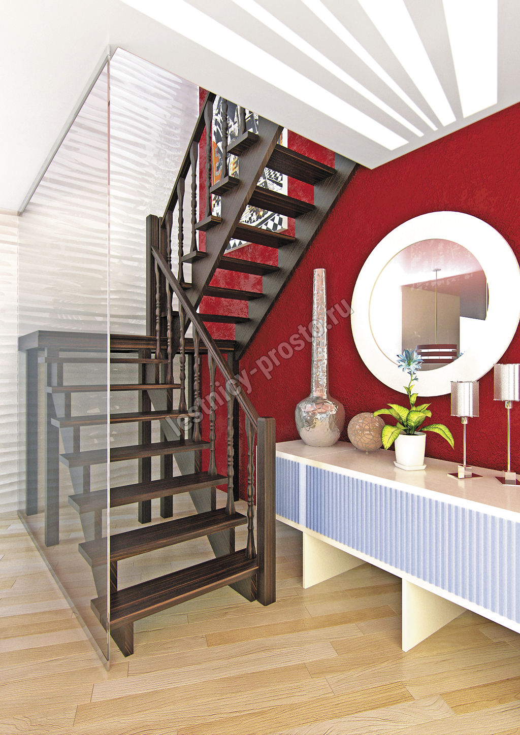 Базовый комплект включает в себя деревянные элементы лестницы, подступенки и ограждения без какого-либо покрытия. Лестница поставляется в разобранном виде, упакованная в ящик. Монтаж производится силами двух человек, в соответствии с указаниями, приведёнными в паспорте лестницы.