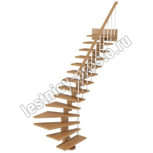 Современная лестница с "воздушным" дизайном. Смотрится легко и благородно, благодаря конструкции на больцах. Хороша при установке к стене, компактна.