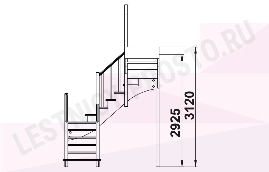 Схема лестницы К-009М/2 с поворотом налево
