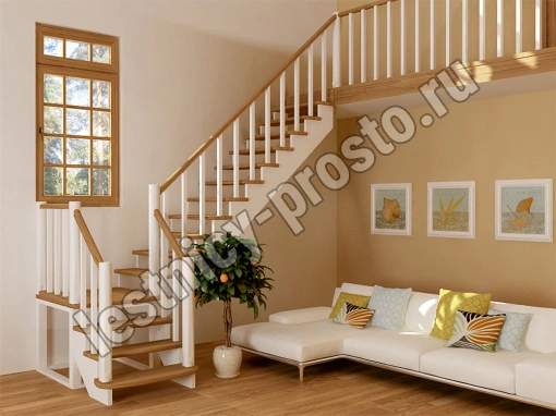 Ступени и поручень лестницы изготовлены из бука, остальные элементы из сосны.