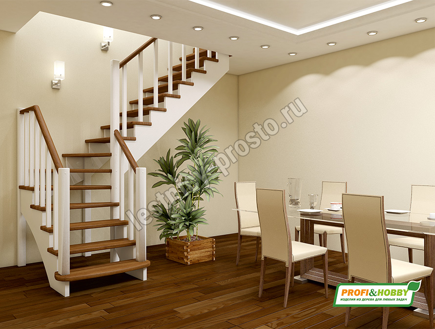 Ступени и поручень лестницы изготовлены из дуба, остальные элементы из сосны.