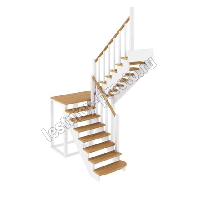 Базовый комплект включает в себя деревянные элементы лестницы с подступёнками и ограждение без какого-либо покрытия.