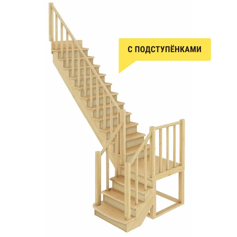 Базовый комплект включает в себя деревянные элементы лестницы и ограждения без какого-либо покрытия. Стандартные ограждения можно заменить на любые другие.