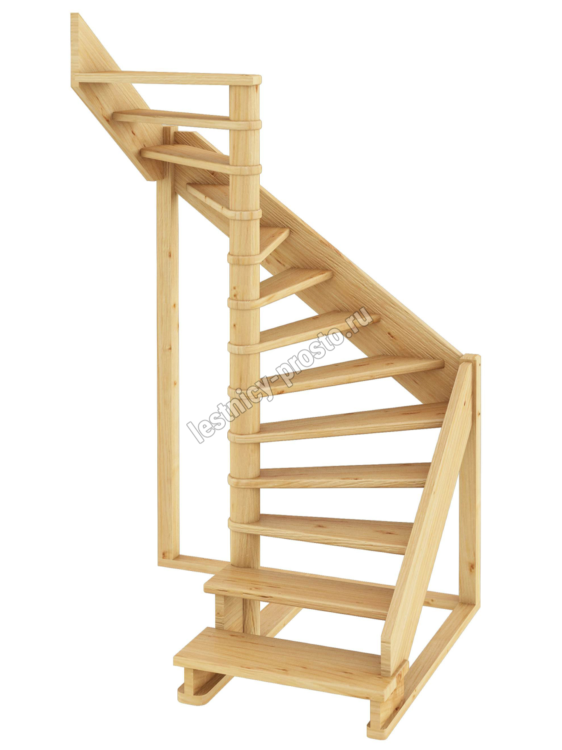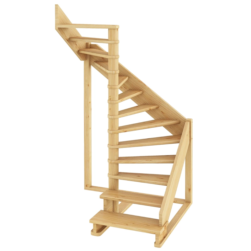 В производстве лестницы ЛС-01м под покраску используется сосна с небольшими изменениями цвета, что практически не влияет на ее механические свойства и почти незаметно при покраске в темные цвета. Базовый комплект включает в себя деревянные элементы лестницы без какого-либо покрытия.