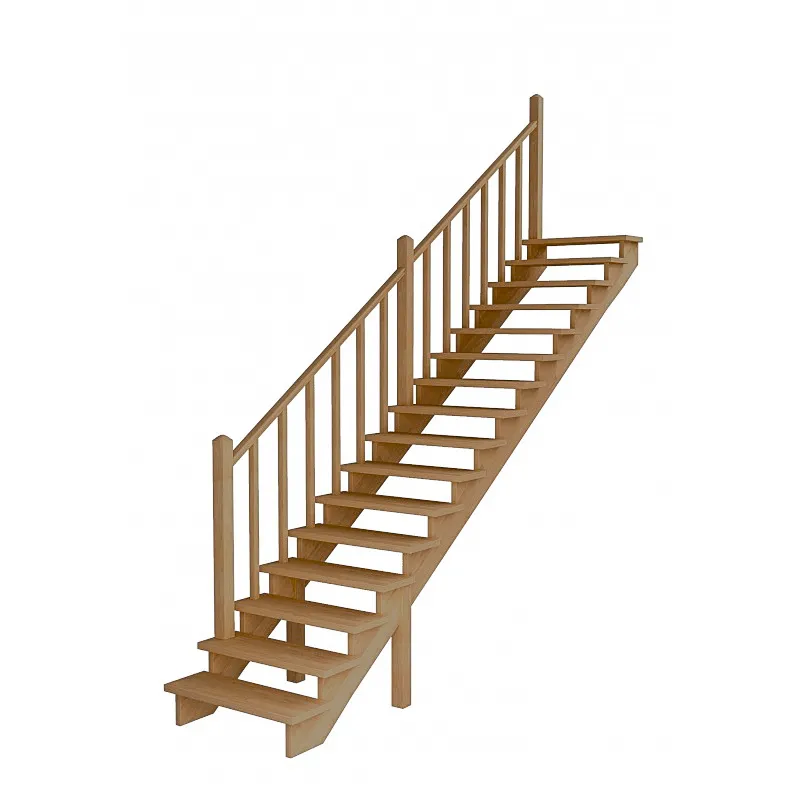 Базовый комплект включает в себя деревянные элементы лестницы без какого-либо покрытия.