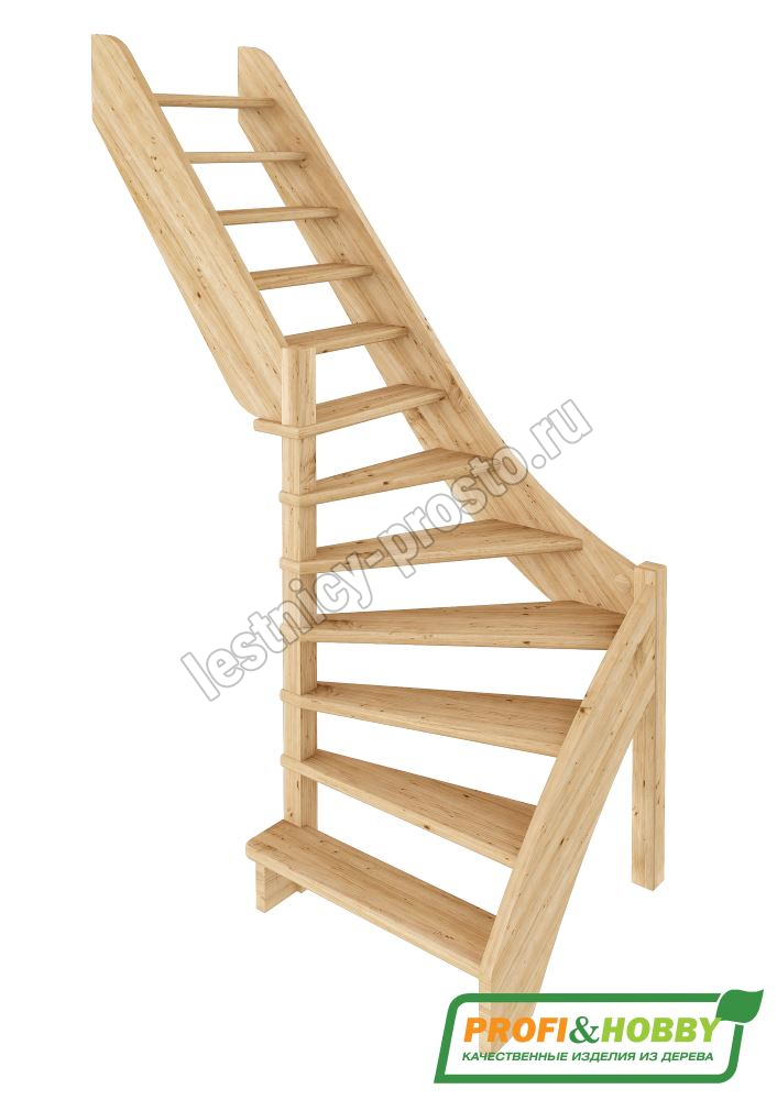 Базовый комплект включает в себя деревянные элементы лестницы без какого-либо покрытия.
