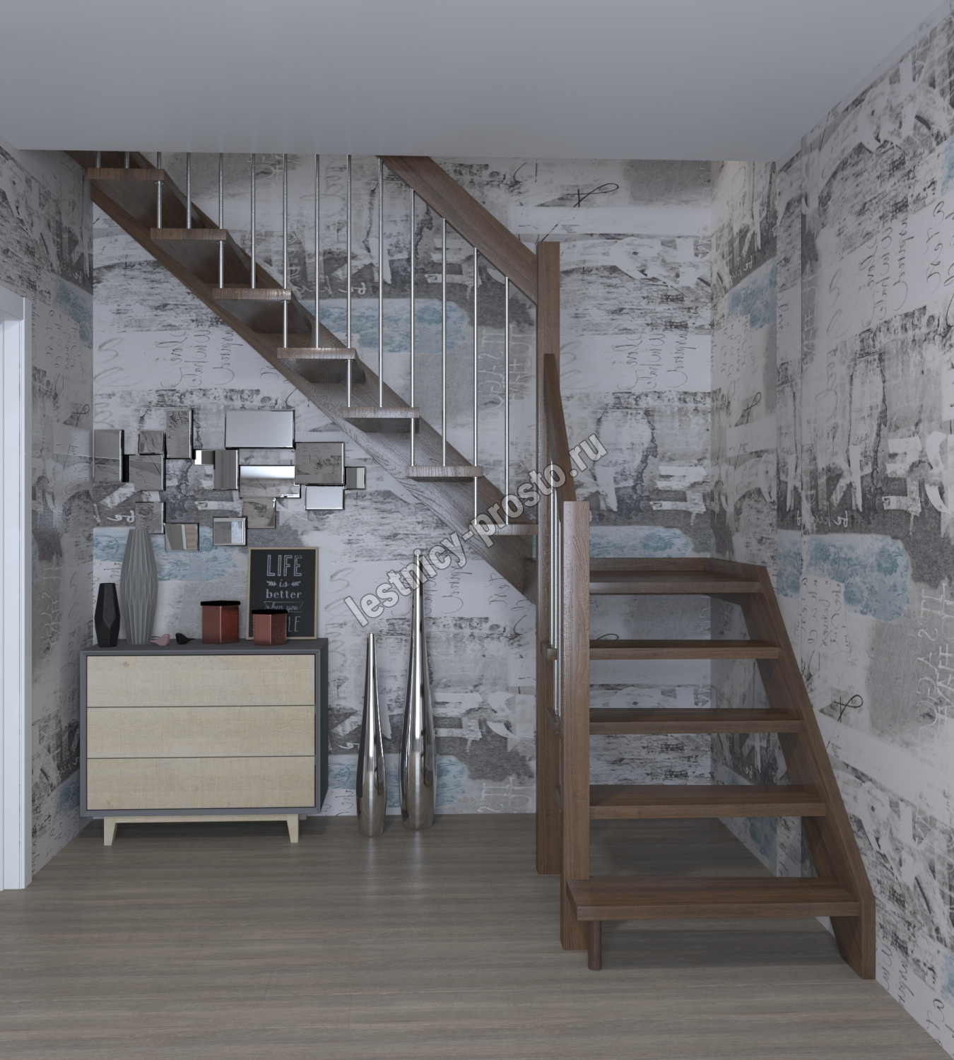 Лестница Prosto Console г-образная забежная бук, h225 см (9 ступеней)