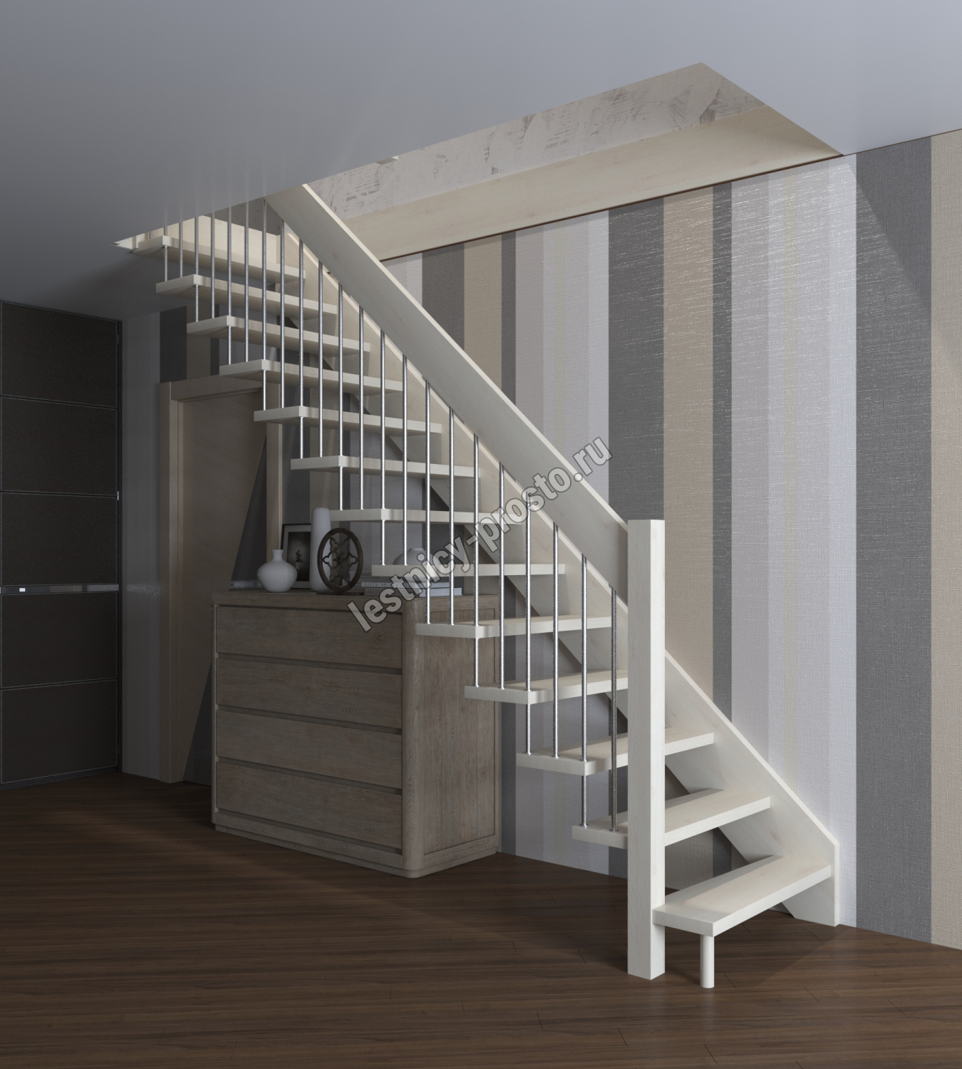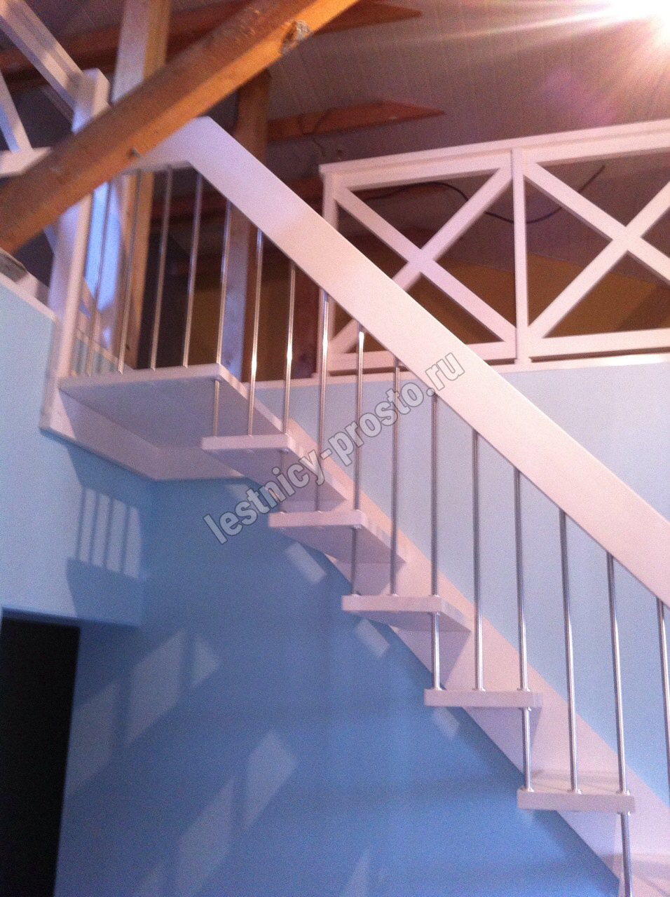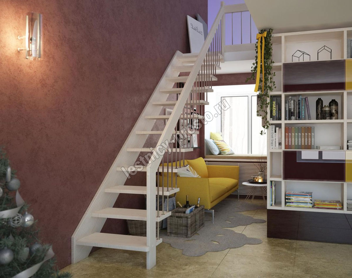 Надёжная современная лестница выполнена по немецкой технологии. Стоимость указана для лестницы с ограждением (с одной стороны); Поставляется в разобранном виде, в комплекте необходимый крепёж; Лестницу можно собрать самостоятельно; Так же, вы можете заказать услугу монтажа нашими специалистами; 4 вида породы дерева для изготовления лестницы: сосна, бук, ясень, дуб; возможна комбинированная лестница: из сосны (ступени бук, ясень, дуб); Деревянные элементы без какого-либо покрытия, отшлифованы, готовы к покраске. За дополнительную плату, вы можете изменить любые параметры, а именно: увеличить глубину ступени; увеличить ширину марша до 900 мм. и выше; заказать подступенки к лестнице; заказать отделку перекрытия (между 1-м и 2-м этажами); изготовить дополнительный промежуточный марш; заказать ограждение 2-го этажа; покраска в любой цвет или несколько цветов или покрытие защитными средствами; дополнение балясины из нержавеющей стали деревянными элементами; покраска балясин из нержавеющей стали порошковой краской в цвет RAL.