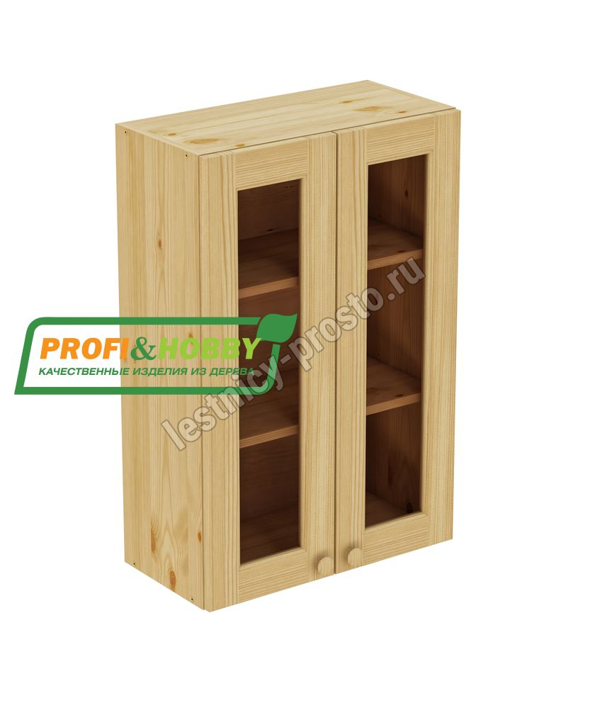 Шкаф навесной 600 х 300 х 900 под стекло, сосна, бесцветный акриловый лак