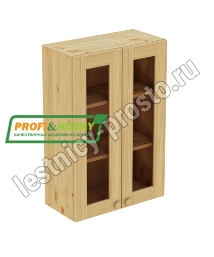 Шкаф навесной изготовлен из 100% массива дерева, без шпона и без МДФ/ДСП.