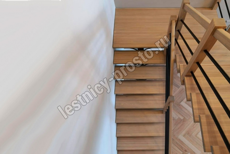 Лестница PROSTO MONO П-образная, h315 см, ступени лиственница
