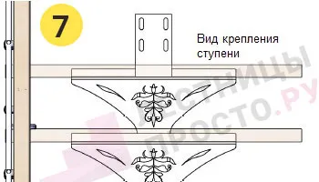 При заказе вы можете выбрать любой вид крепления ступеней из показанных ниже в блоке "Чертежи и схемы" (просто оформите заказ, мы позвоним вам для согласования заказа и спросим номер необходимого крепления) .