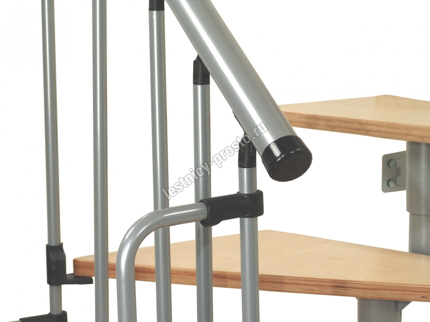 Алюминиевый поручень лестницы Joker 600 покрыт порошковой краской в цвет конструкции. Ступени изготовлены из берёзы и покрыты защитным износостойким фирменным лаком MINKA.