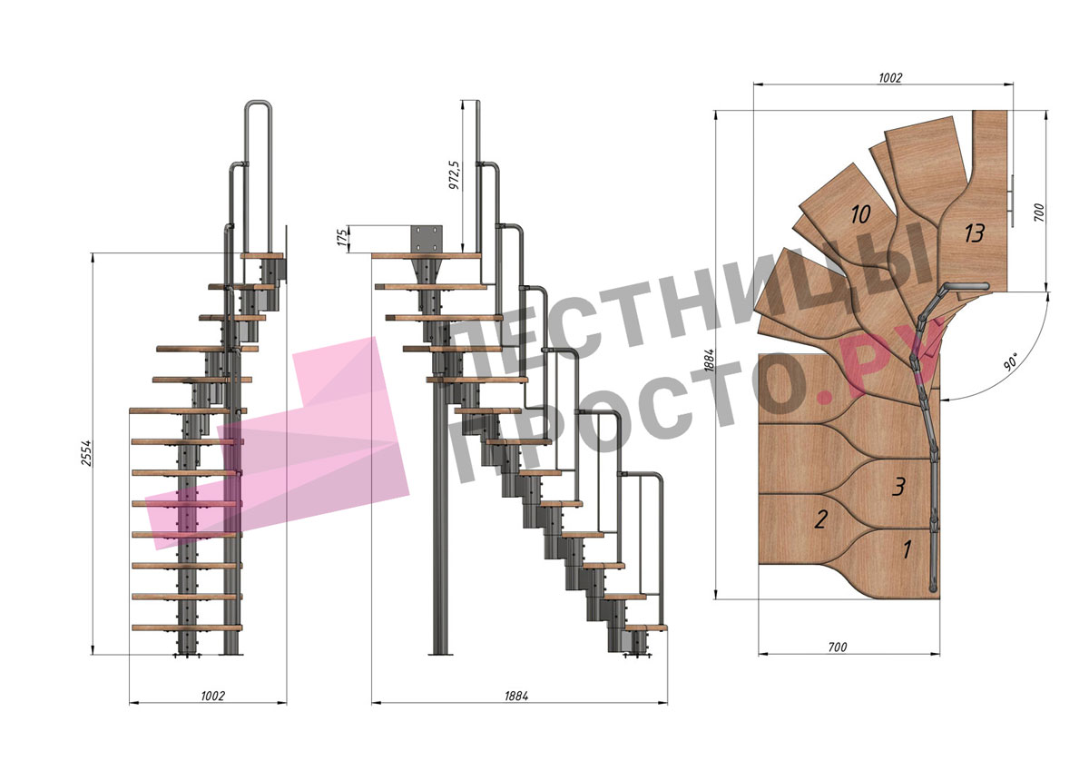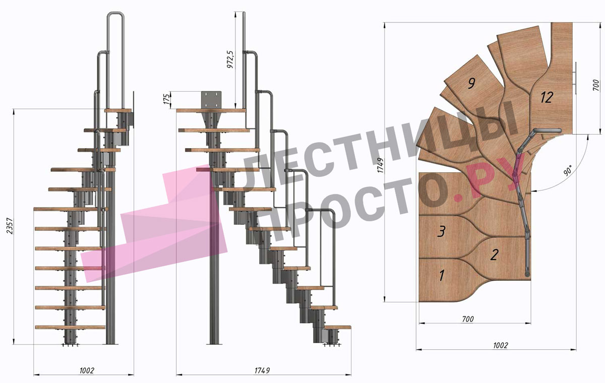 Лестница Prosto Urban Black гусиный шаг 700 мм/Ступени из берёзы мультиплекс