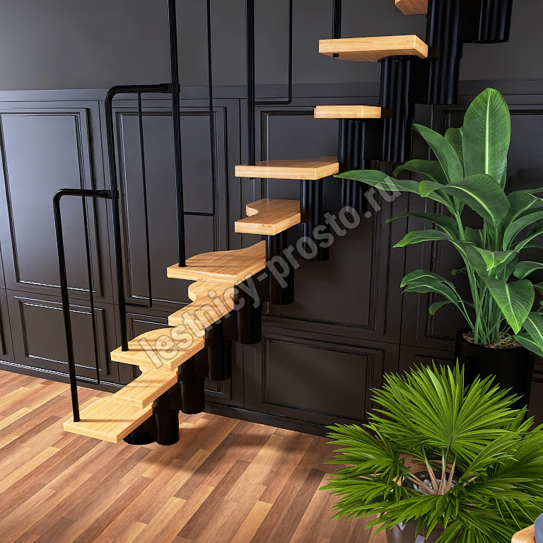 Лестница Prosto Urban Black гусиный шаг 700 мм/Ступени из срощенного ясеня