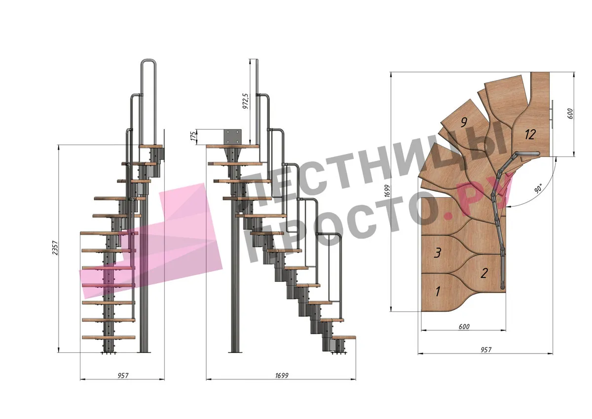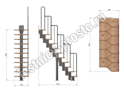 Лестница Prosto Urban Black гусиный шаг 600 мм/ Ступени из берёзы мультиплекс
