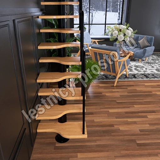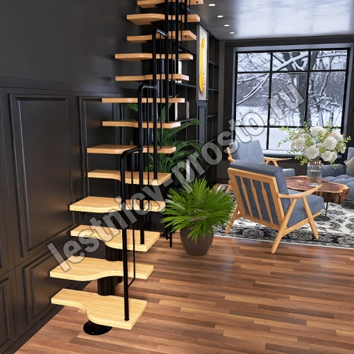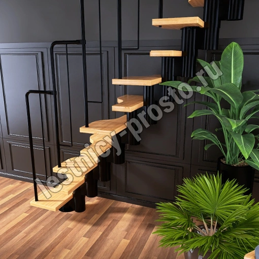 Лестница Prosto Urban Black гусиный шаг 600 мм/Ступени из срощенного дуба