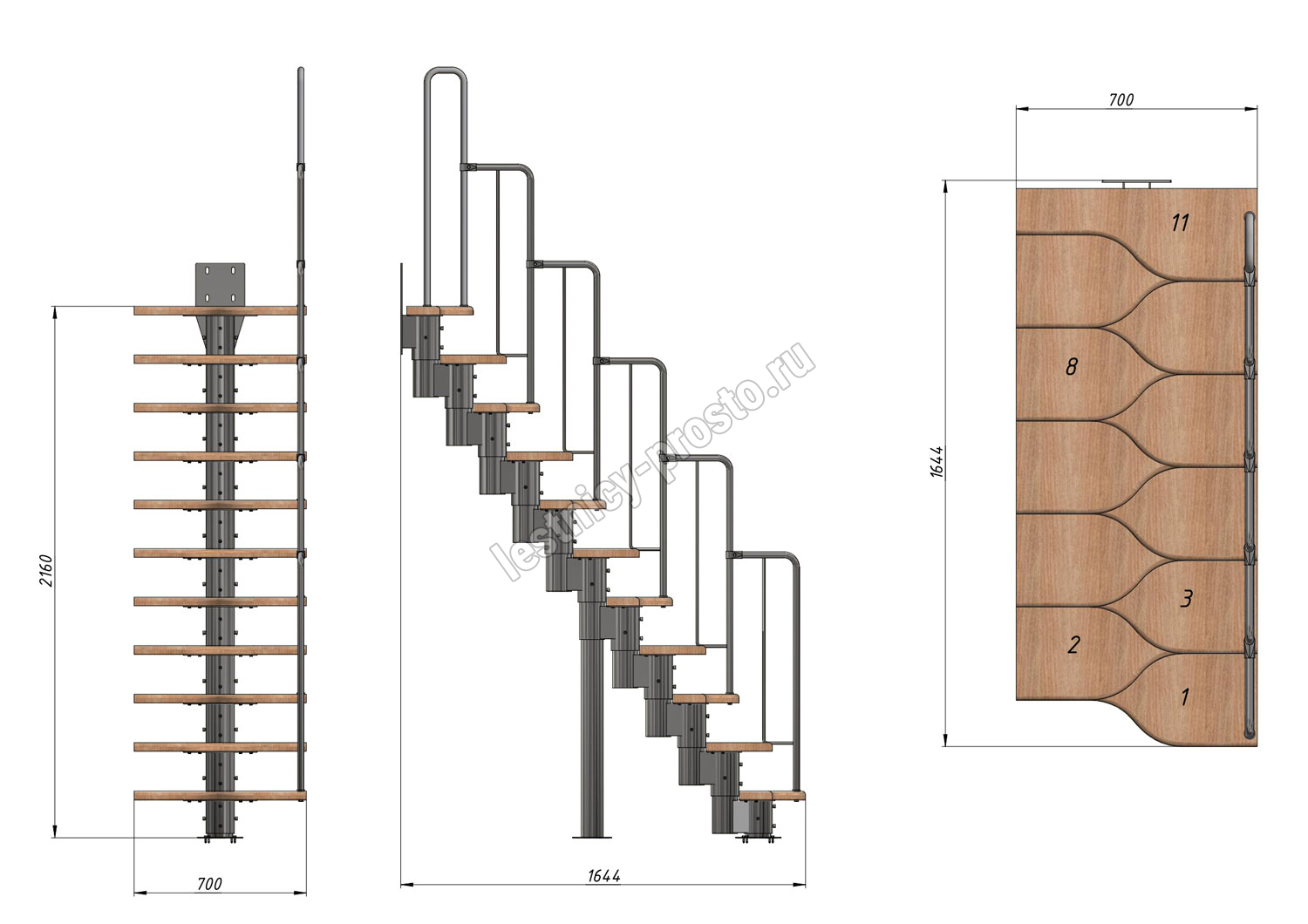 Высота лестницы 1980 - 2880 (11 ступеней) мм