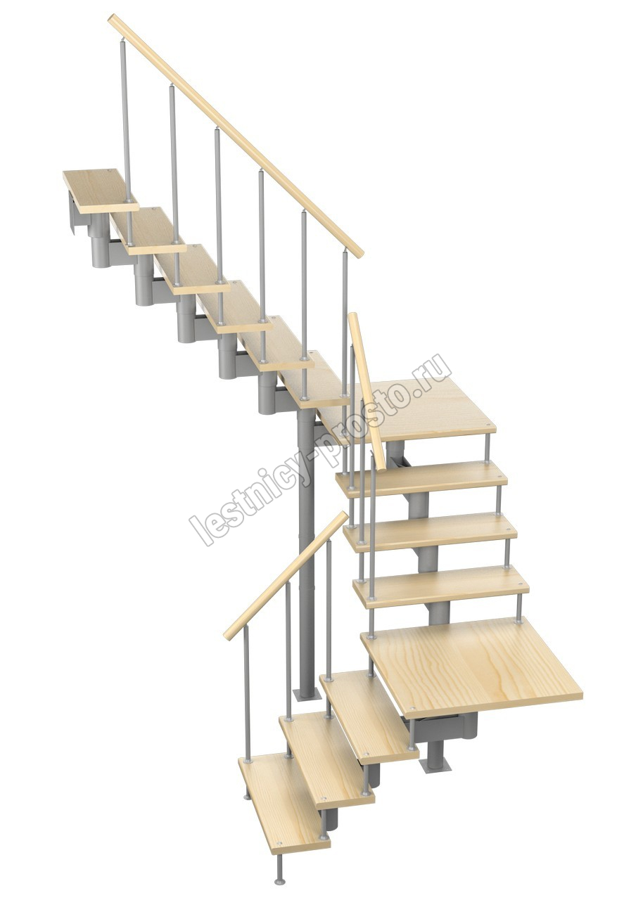 Модульная лестница Комфорт 225 3150-3290, Белый, Сосна, Нержавеющая сталь