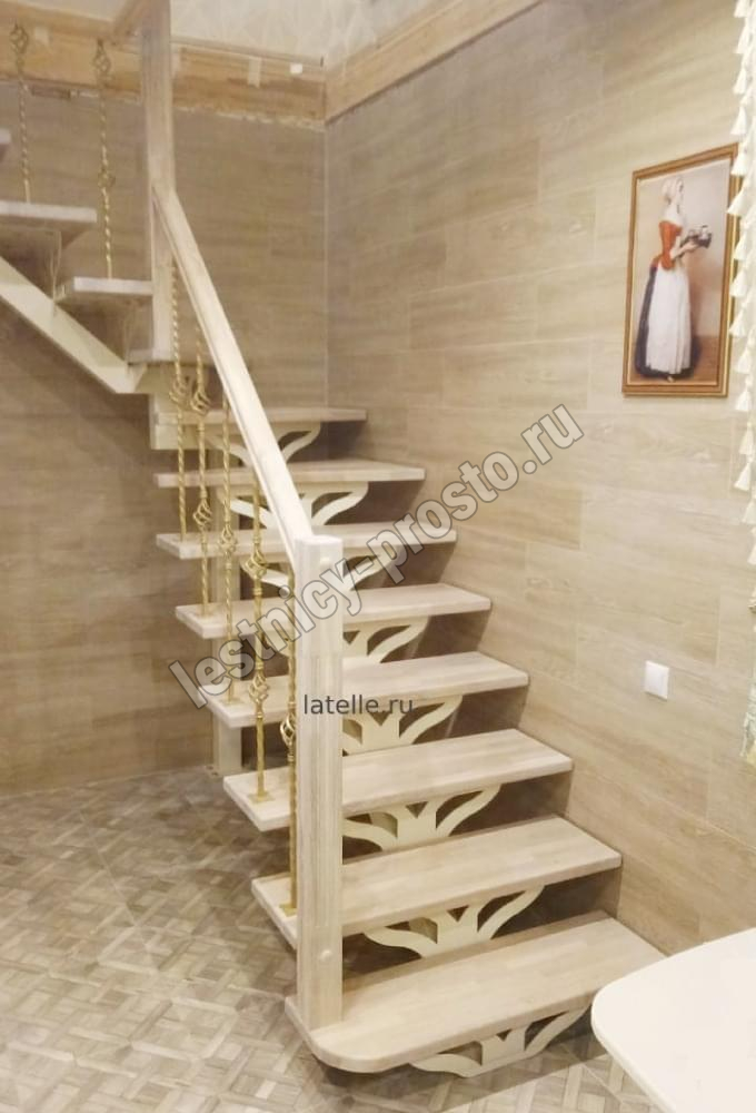 | Лестница PROSTO MONO Г-образная h225 см, ступени лиственница |