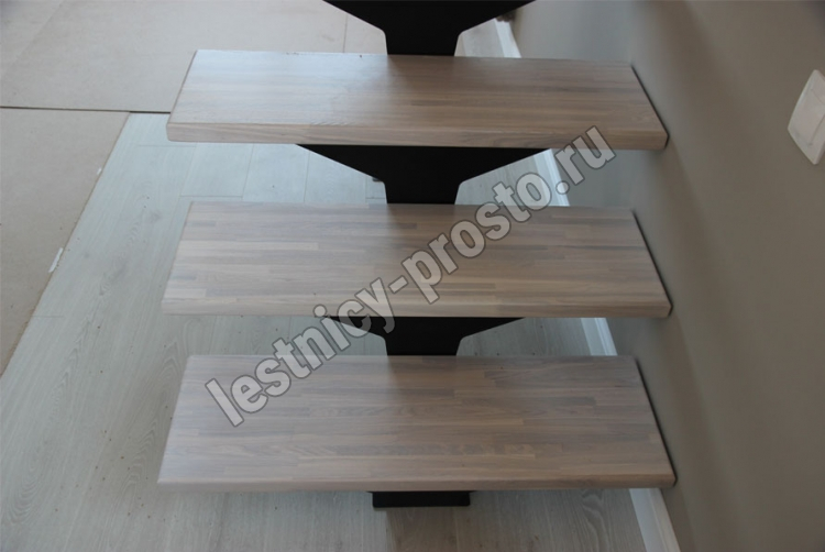 Ступени лестницы изготовлены из дерева категории А/В паркетной склейки без какого-либо покрытия.