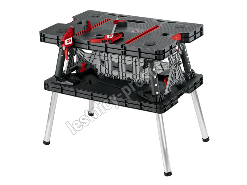 Складной верстак KETER - это передвижное рабочее место. Изготовлен из пластика устойчивого к истиранию и высоким температурам. Складная конструкция позволяет быстро подготовить верстак к использованию. Большая рабочая поверхность выдерживает нагрузку до 453 килограмм. В сложенном виде верстак занимает совсем мало места.