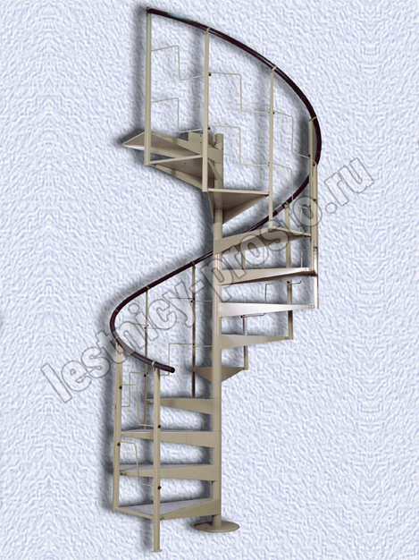 Компактная металлическая винтовая лестница КАСКАД. Ступени лестницы покрыты специальным антискользящим материалом.