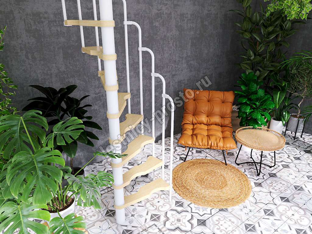 Винтовая лестница PROSTO MINI белая, 70×140 см, h322-345 см
