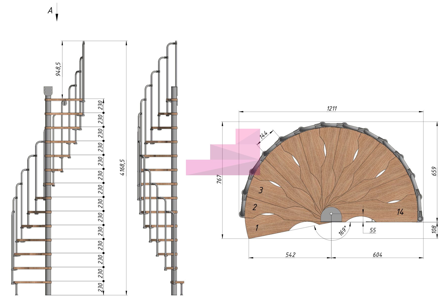 | Винтовая лестница PROSTO MINI белая, 60×120 см, h299-322 см |