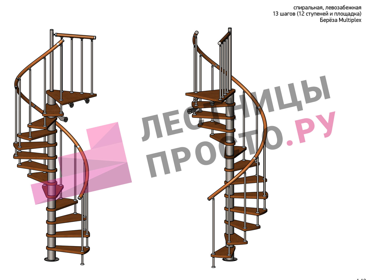 Решение об ориентации поворота лестницы принимается при сборке (комплект собирается и в правозабежную, и в левозабежную лестницу)