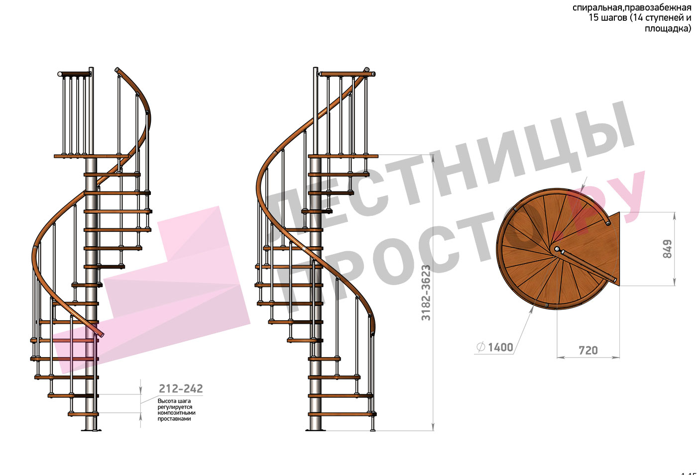 Винтовая лестница Prosto Spiral Black/Высота 3182 - 3623 мм