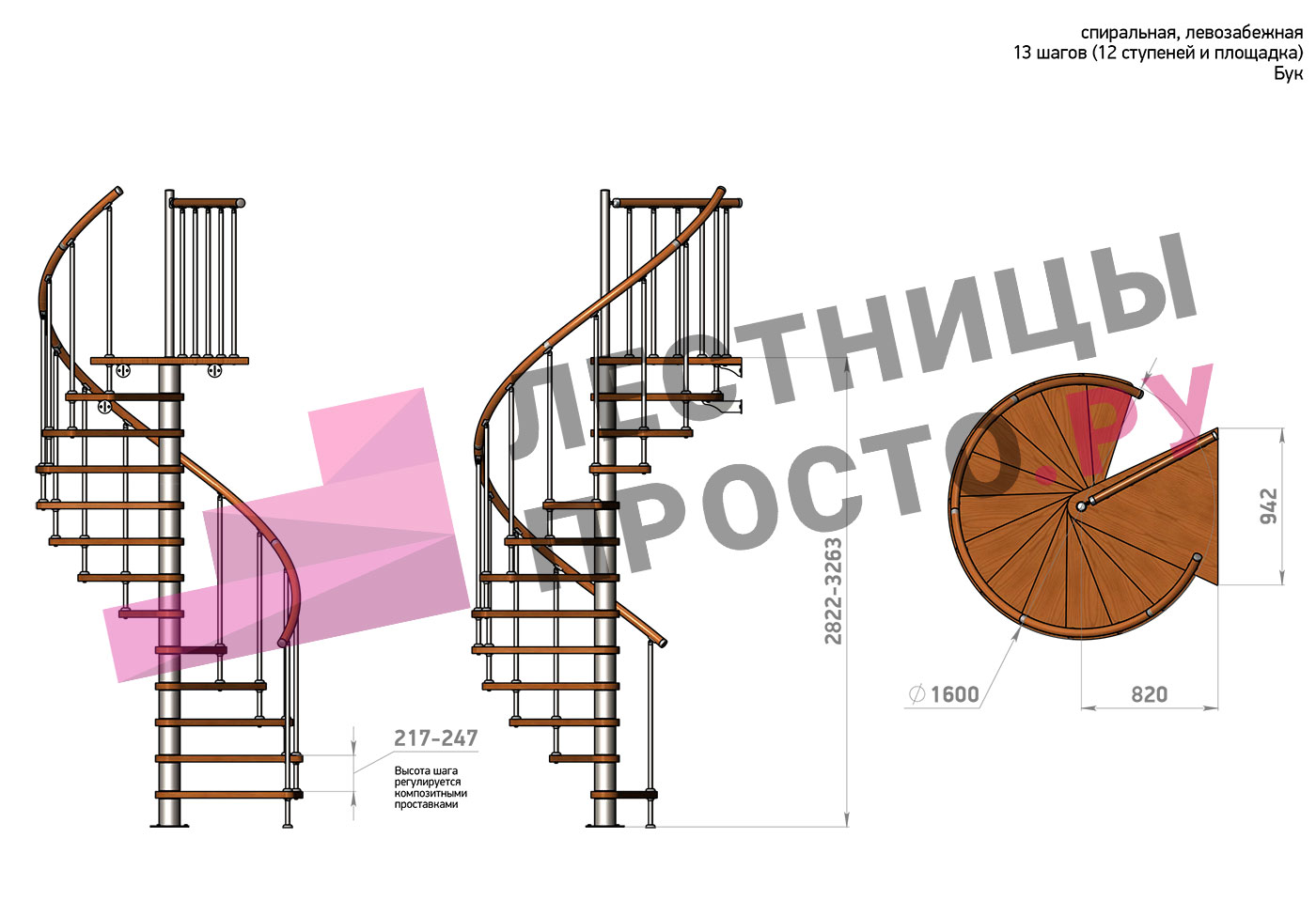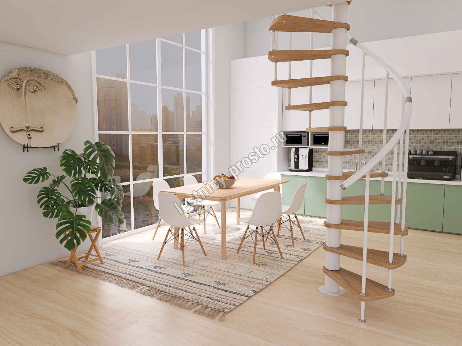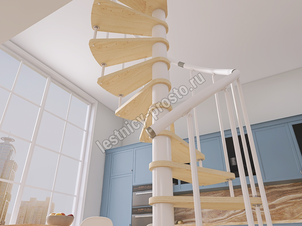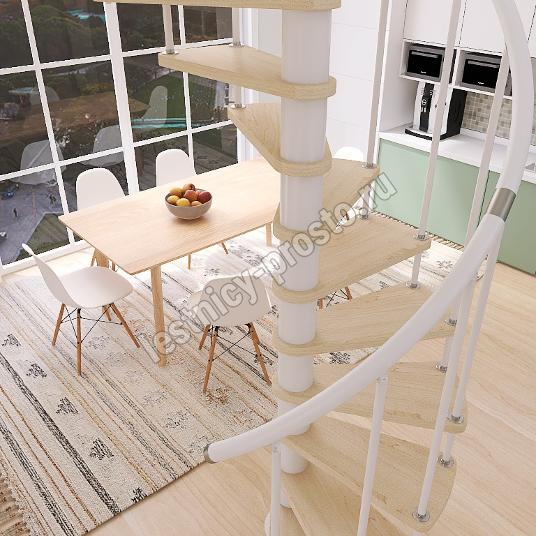 Винтовая лестница Prosto Spiral White D160см, h282.2-326,3 см, бук