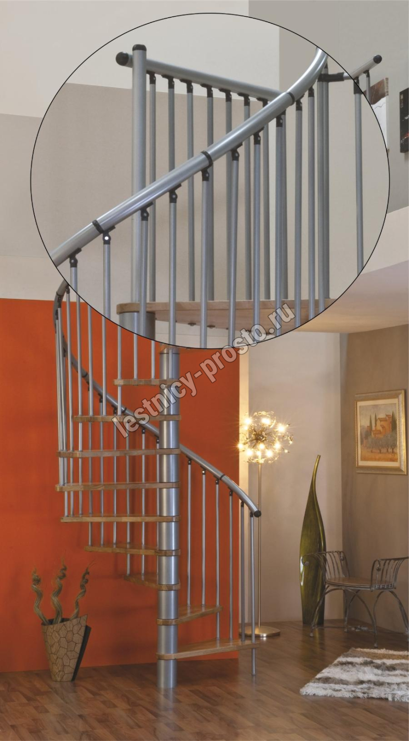 Винтовая лестница SPIRAL EFFECT d120 см, серебро, лакированный бук