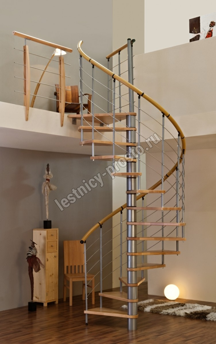 | Винтовая лестница Venezia d120 см, серебро, бук лакированный |