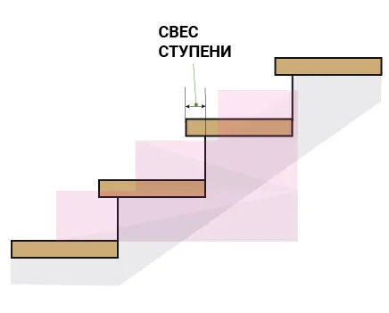 Свес ступени разница между шириной ступени и шириной проступи. Свес проступи измеряется как расстояние, на которое передняя кромка верхней ступени нависает на нижней.