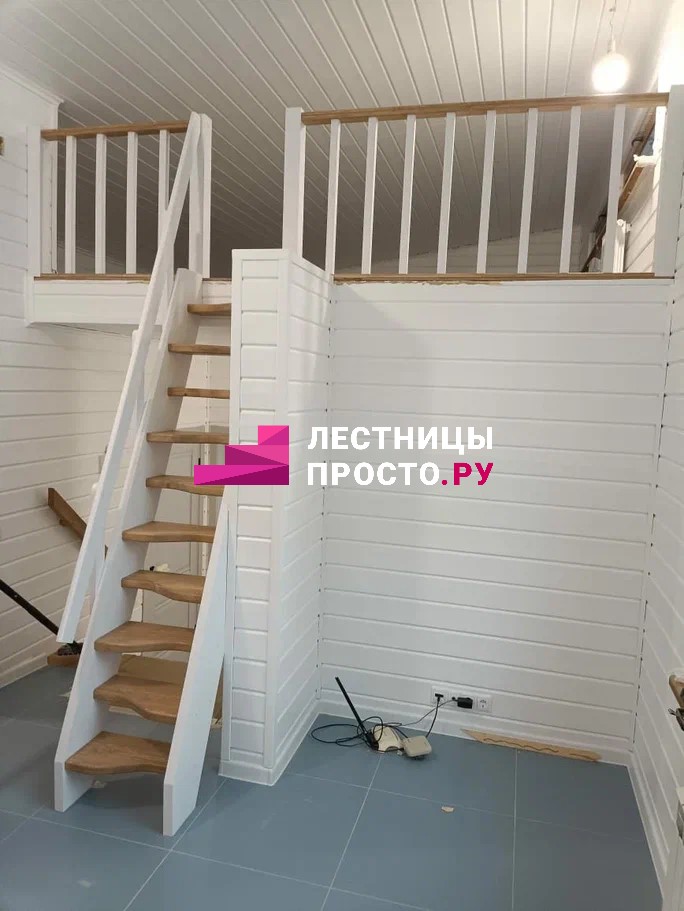 Лестница из сосны с поворотом без покраски