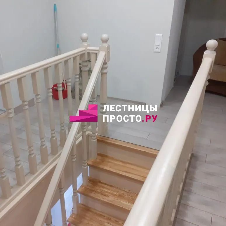 Лестница LP из сосны на второй этаж с поворотом на 180 градусов