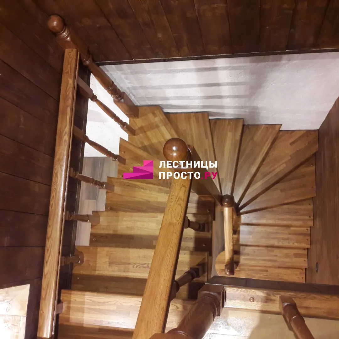 Лестница с поворотом на 180 градусов из цельноламельного дуба