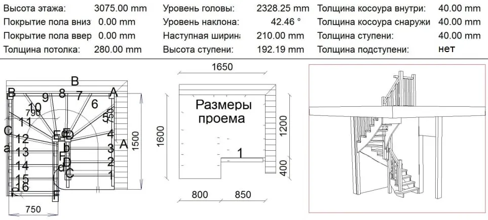 Форма лестницы П-образная