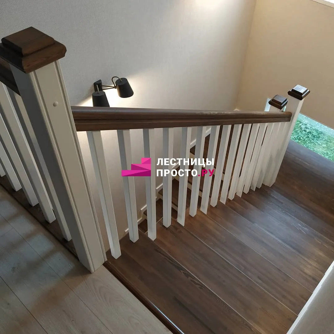 Лестница на второй этаж из лиственницы по индивидуальному проекту LP-000468